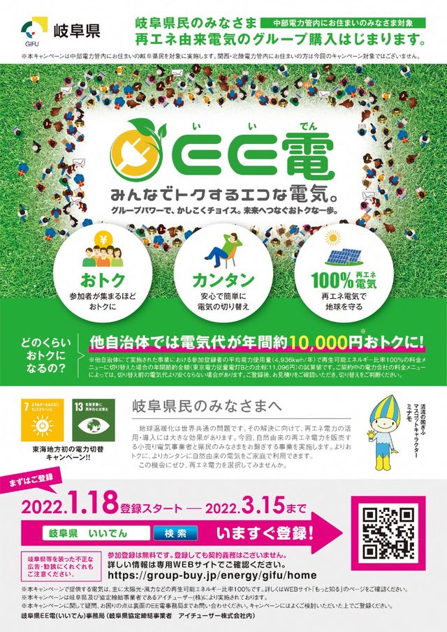 【報道発表】再生可能エネルギー由来電気グループ購入「EE電(いいでん)」キャンペーンの参加者を募集【募集は終了しました】