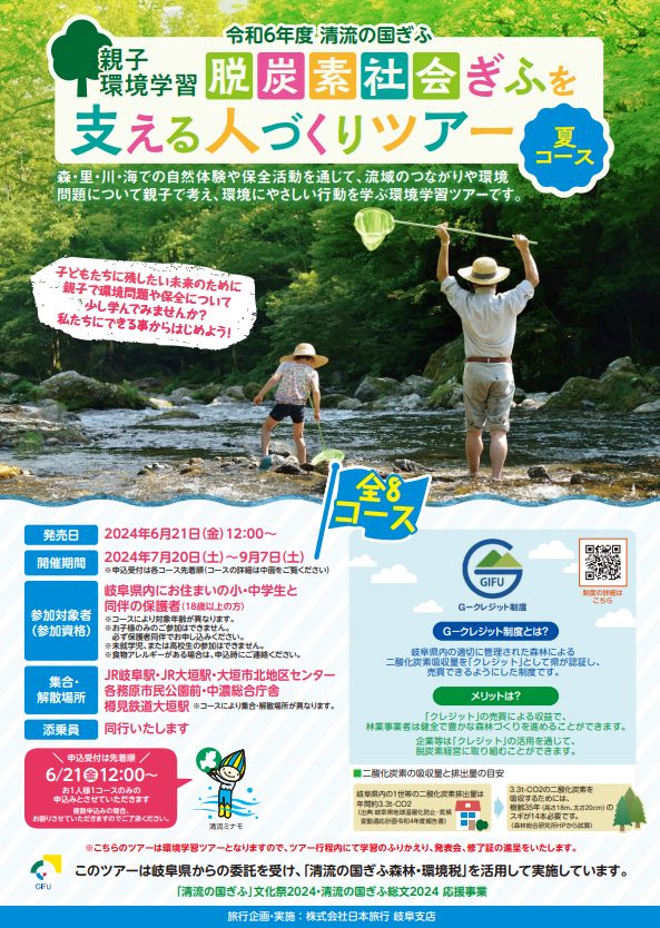 ☆令和6年度「清流の国ぎふ 親子環境学習 脱炭素社会ぎふを支える人づくりツアー」夏 コースの参加者を募集します。☆