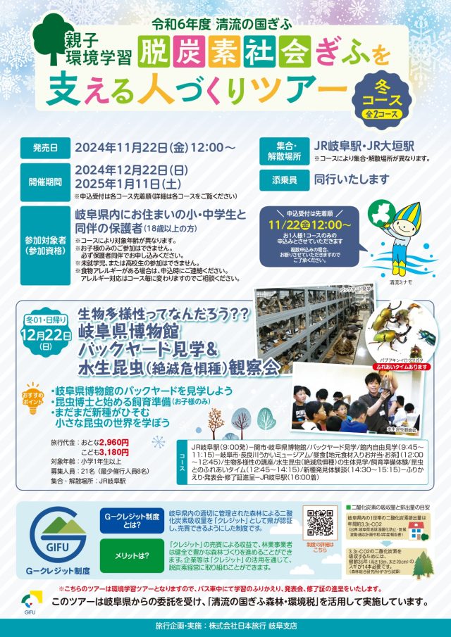 ☆令和6年度「清流の国ぎふ 親子環境学習 脱炭素社会ぎふを支える人づくりツアー」冬コースの参加者を募集します。☆