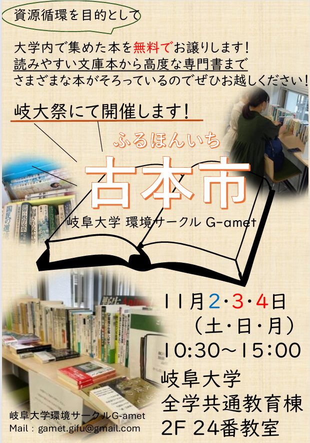 ☆岐阜大学「岐大祭」 大学内で集めた本を無償で譲渡する古本市のお知らせ☆